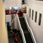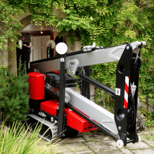 Traťový pohon s neznačkovacími gumovými pásy zajišťuje snadné, přesné manévrování a ochranu citlivých podlah. Ovládání z koše nebo země s odpojitelným kabelovým ovladačem.