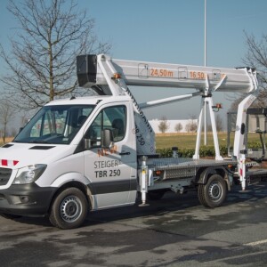 Even with its steel boom system and movable jib (RÜSSEL®), the TBR 250 is able to provide a remarkable 24.5 m working height. It can be driven by anyone with a valid B/3 passenger car driver’s license.