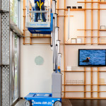 Genie® Runabout® GR™-20 lifts are compact, low-weight machines that increase productivity on the job thanks to their ability to fit through doorways and in most passenger elevators. And, it can be driven through doorways with operator on board. A zero inside turning radius and full elevation drive feature also contribute to these models’ increased productivity.
