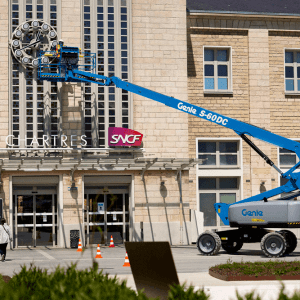 The Genie® S®-60 DC boom lift offers the same performance of a 4x4 diesel machine in a clean, quiet electric boom. The ultra-efficient electric AC drive motors allow for a full day’s performance on a single battery charge, making it an ideal, eco-friendly solution for a number of outdoor and indoor applications on construction sites, facilities, malls, sports arenas, and also challenging pedestrian areas.